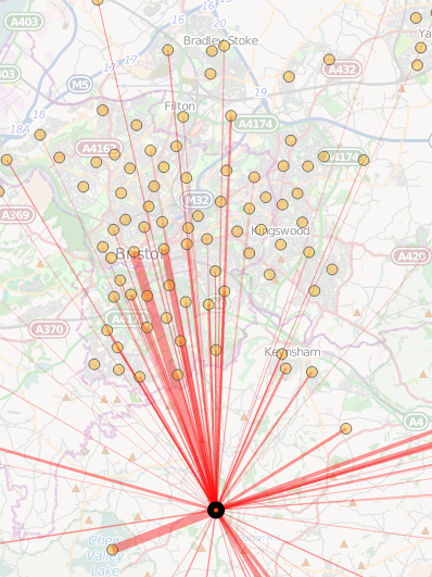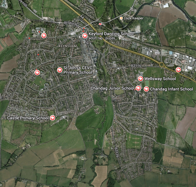 And in fact most of Keynsham seems to be either heading towards Bristol or to Bath: