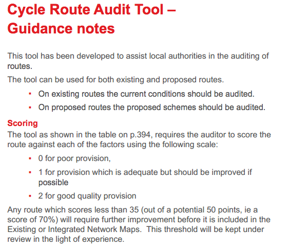 I mean it even gives a set of walking and cycling audit tools councillors can beat officers over the head with to force a minimum quality of delivery: