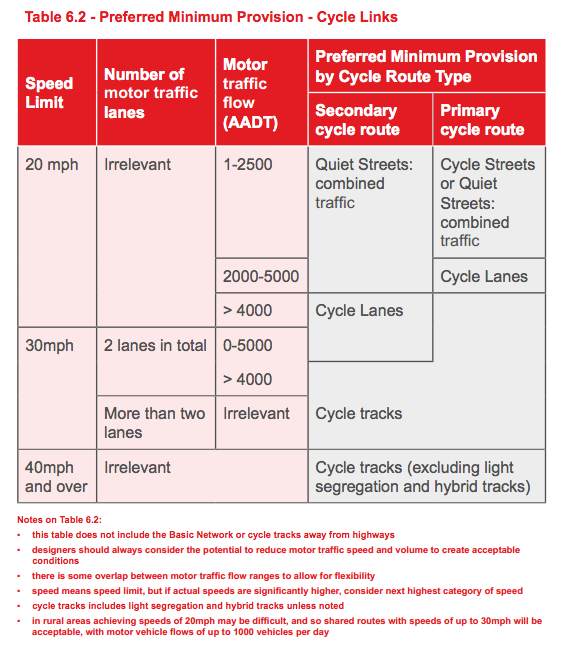 If you go back up and reference the “Preferred Minimum Provision” grid you will see that ‘enforced’ 20MPH speed limit roads enable you to obviate the need for specific cycle lanes. They work. They create a calming effect and enable kids to play and cycle in the streets. They save lives. The problem is, if a resident only ever gets into their car and drives from their house to work, the gym, and the shops, then they see no need for it and perceive it as a nuisance. 20MPH zones take back the streets from cars. They enable people that walk and cycle to enjoy the space safely. They make it a living street.