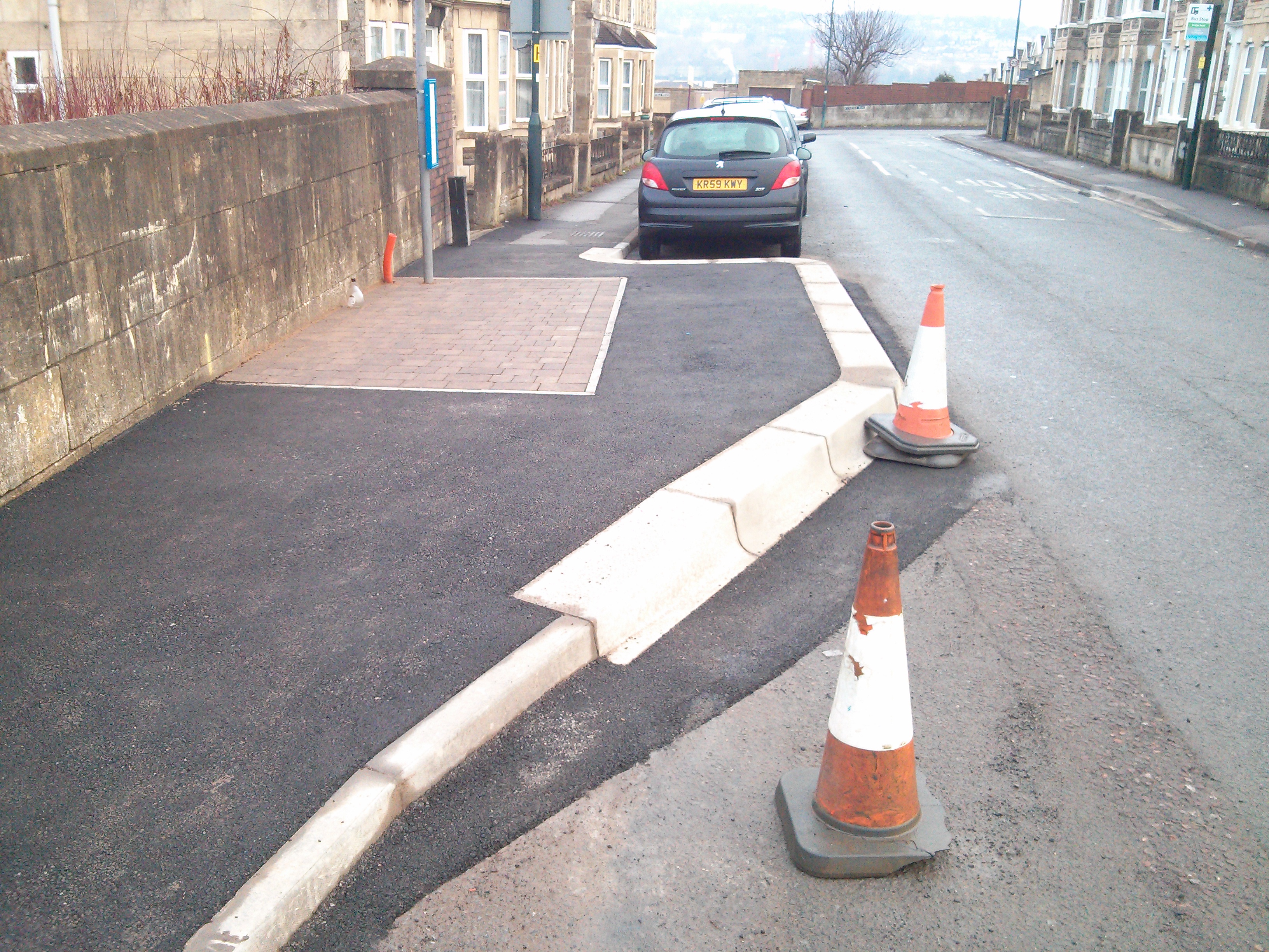 I’m sort of shocked. They MOVED the damn bus stop further along. They REMOVED 3 parking spaces. They’ve made it even harder for somebody in a wheelchair to get to the bus stop from the other side. They created a pinch point as the bus outbuild is massively wider than it should be.