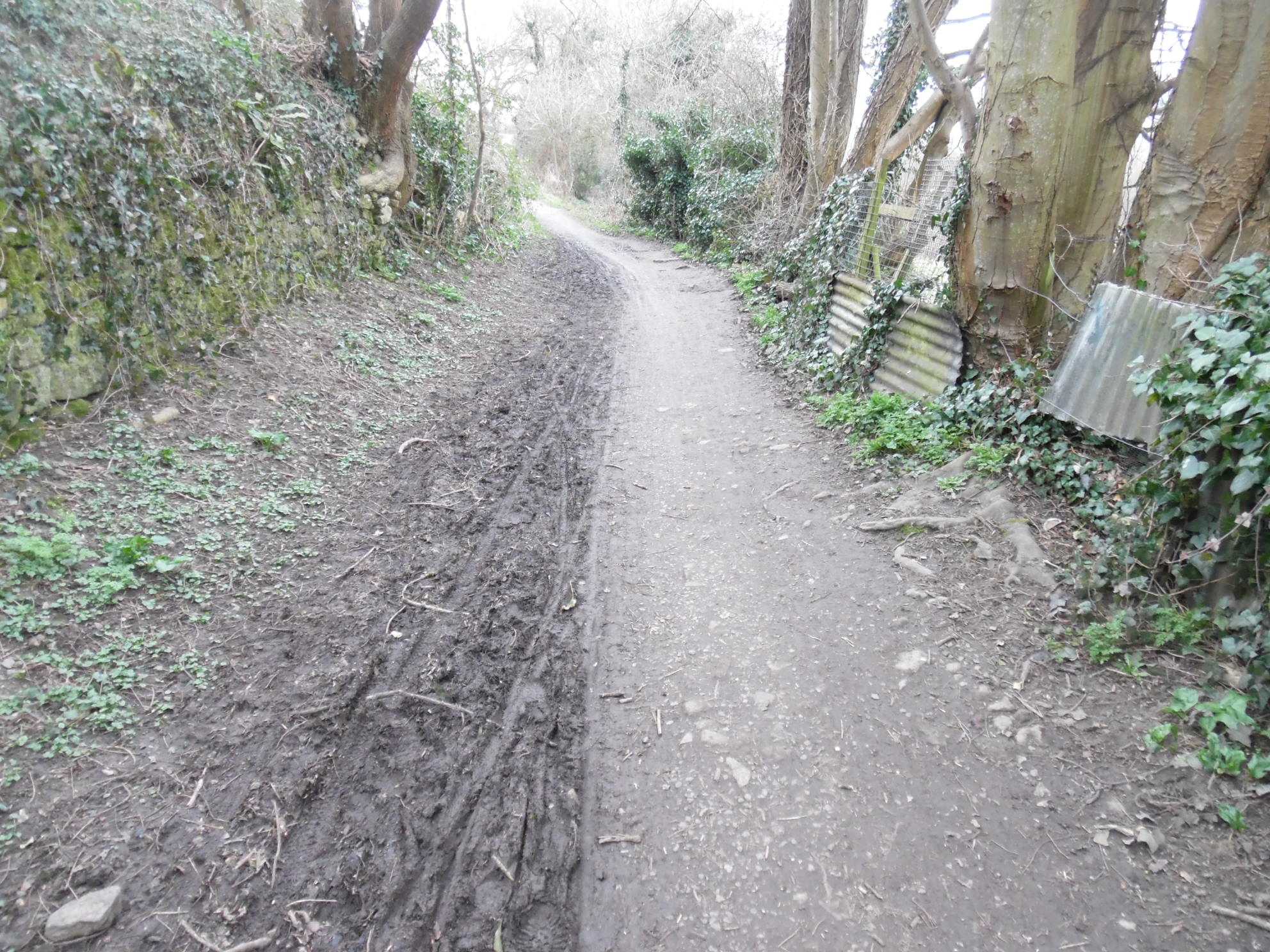 What looks like a reasonably dry side to the right is at such a steep camber that no ones walks or rides on it, so the effective usable width is about 300mm