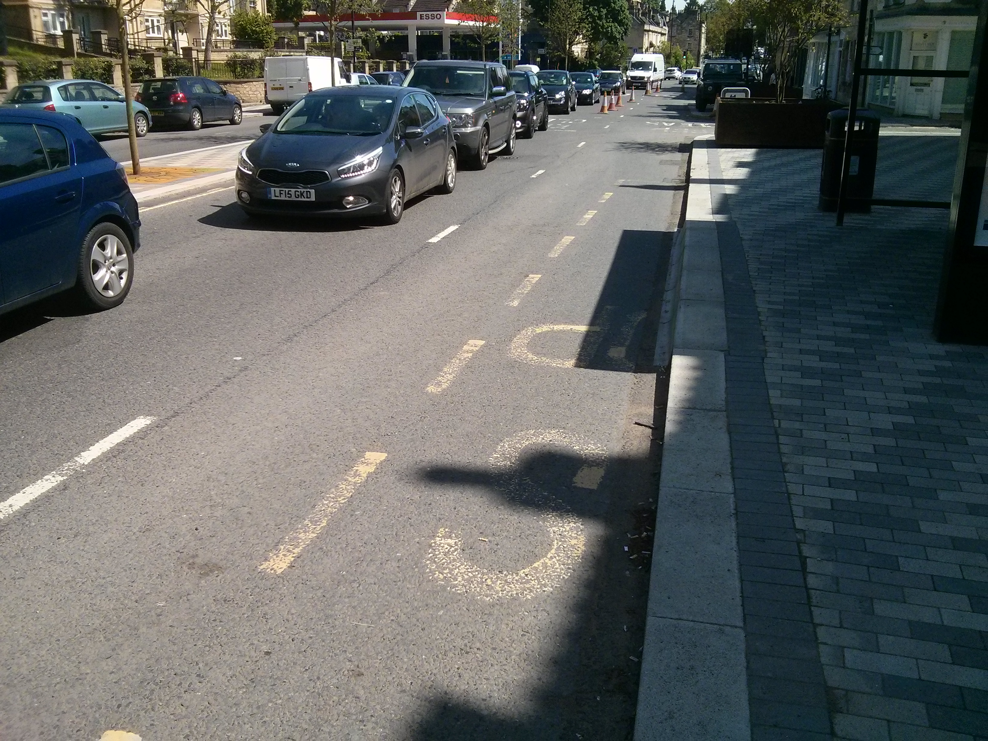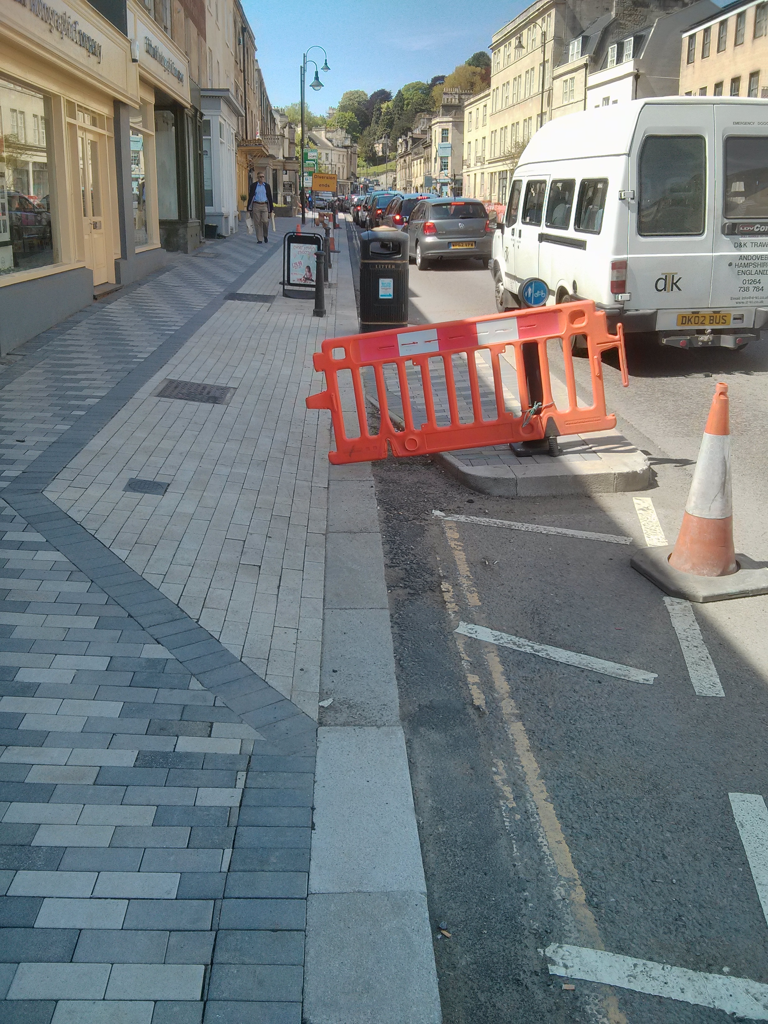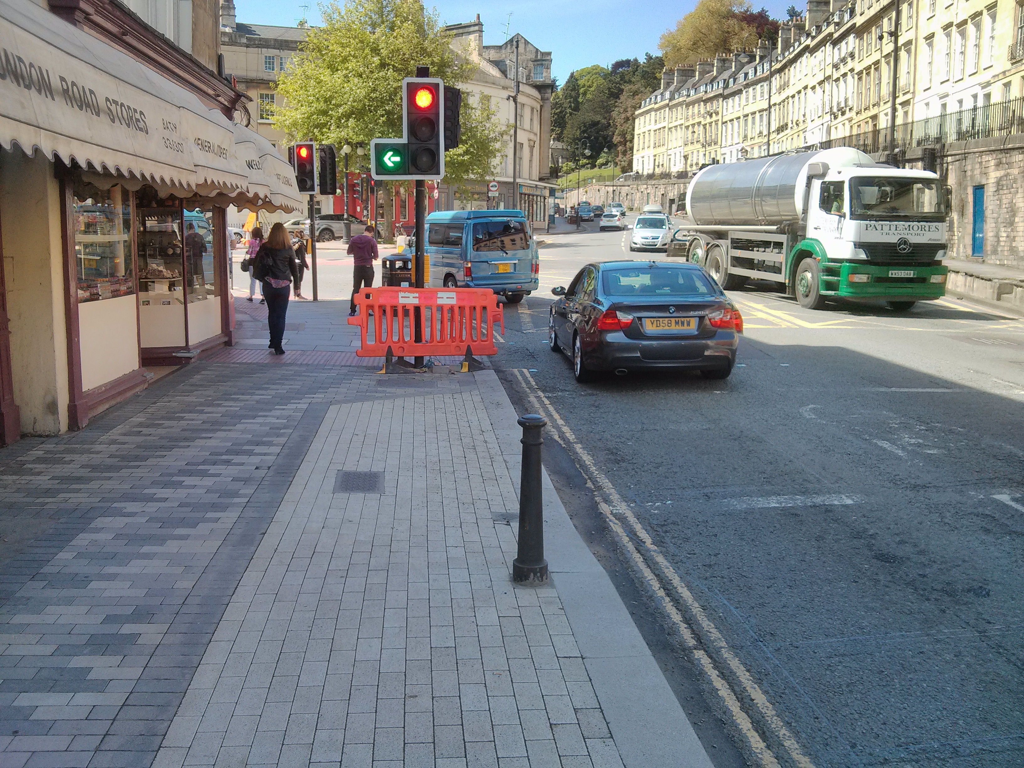 I commute down the London Road out of Bath by bicycle every day and have watched the new scheme materialise with ever increasing concern (and disbelief given today’s pro-cycling zeitgeist) that it hasn’t been planned with cyclists in mind. Going East, the road now narrows approaching the Esso garage, preventing cyclists passing congested traffic safely on the right – passing on left is particularly dangerous given the chances of a motorist suddenly deciding to fill up their car and turn into the garage without due care. This is a similar situation to pinch point you illustrate at the pedestrian crossing traffic lights. I agree cyclists must take the road to survive, but why force cyclists to sit in traffic inhaling exhaust when a cycle lane could so easily have been accommodated? A key advantage of cycling is not being forced to be stuck in a traffic jam.