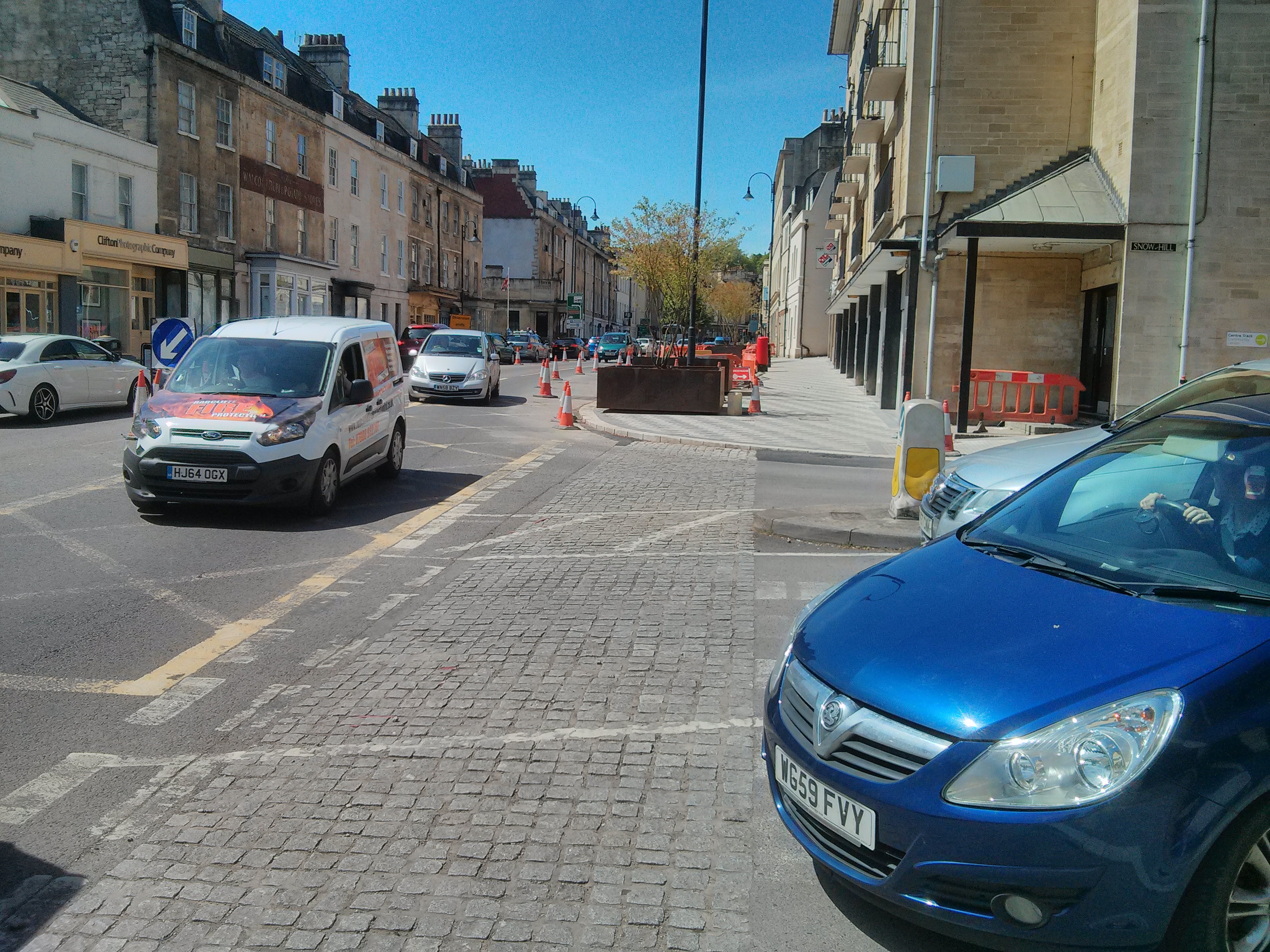 4. Adam, your article is spot-on. London Road is my daily cycling route in and out of Bath. And it is now truly terrible for cyclists. It is worse than it was before this ugly redesign was completed – particularly, as you state, at the choke point near the Esso garage. The short segregated “cycle lane” leading west up to Cleveland Place is a joke; it is always blocked by parked cars & signs, and cyclists must mix it with pedestrians. There is so much space wasted by the rust-box monstrosities, especially in the central reservation towards the eastern end of the rebuild. The grey-coloured cobbles/sets/whatever-they-are clash horribly with the Bath stone of the buildings, so not only is it a disaster in terms of its utility, but also in terms of its aesthetic appeal (or lack of it) as well.