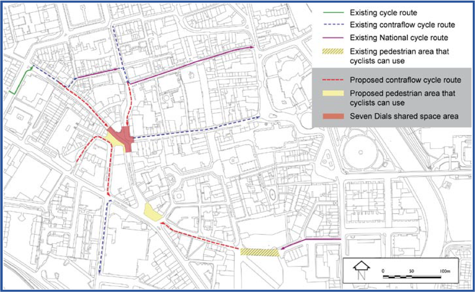 Note that I have had a response that indicates that although the council have stated that Seven Dials is complete this is the construction phase and not the on road cycle contraflows.