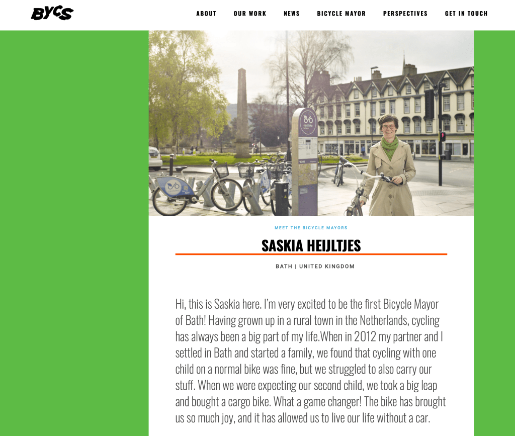 Bath resident, Saskia Heijltjes has recently been selected by BYCS – a cycling action group based in the Netherlands – to be the first Bicycle Mayor for Bath.