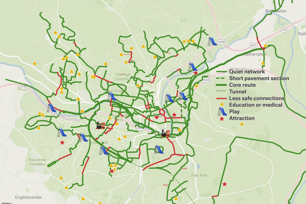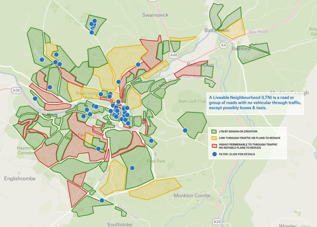 I should emphasise that a Liveable City does not give up on its main road infrastructure. There are too many places where there is not even a pavement. Too many places there is no safe means of crossing the road. No high quality cycling infrastructure outside the short stretch on Upper Bristol Road. The remaining 30mph roads in Bath are looking increasingly incongruous. Removing through traffic from residential streets generally has a negligible impact on motor traffic levels on boundary roads, and it allows limited budget for things like zebra crossings and protected cycling infrastructure to be focussed on places where they deliver the best value for money.