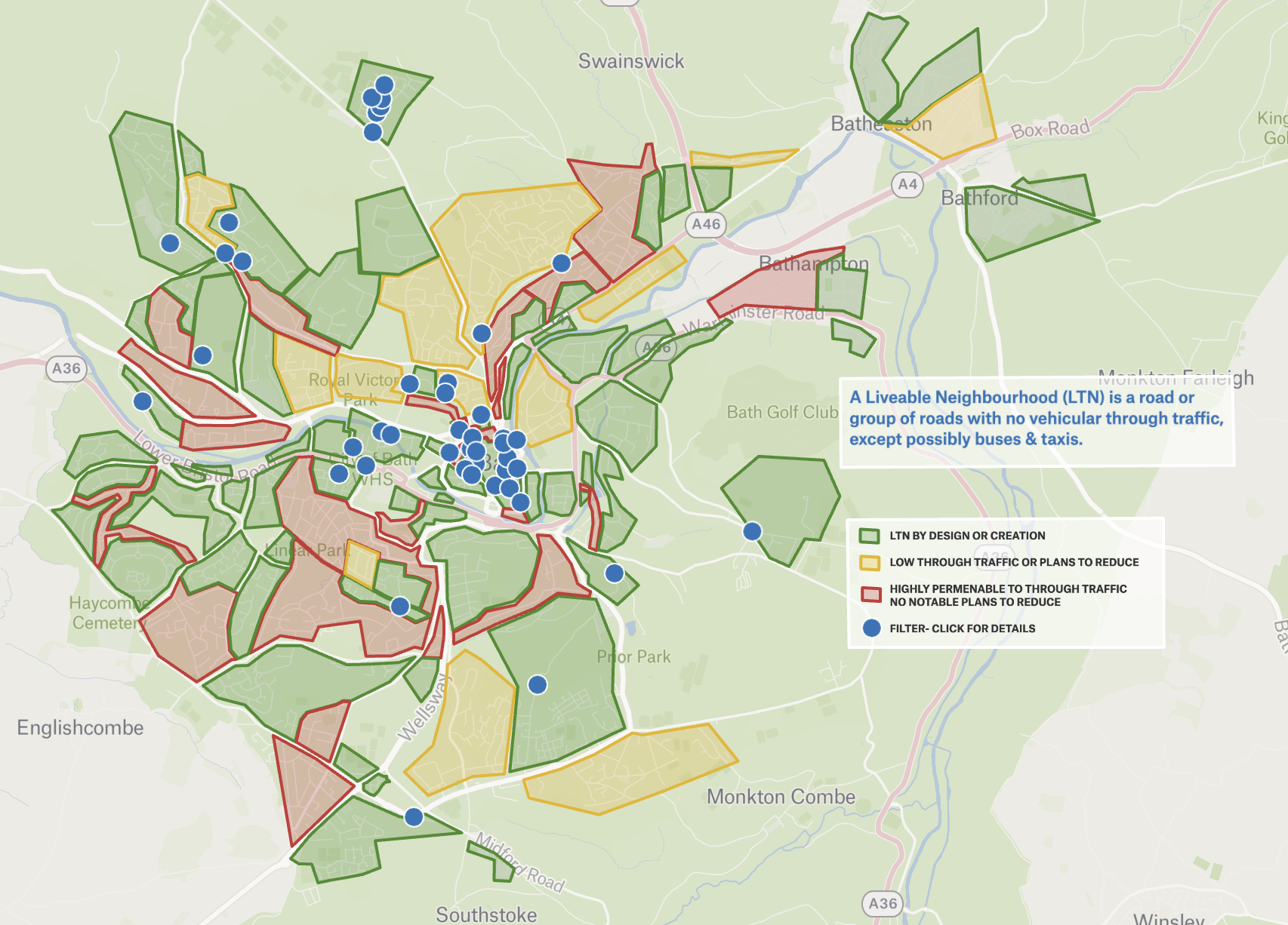 I should emphasise that a Liveable City does not give up on its main road infrastructure. There are too many places where there is not even a pavement. Too many places there is no safe means of crossing the road. No high quality cycling infrastructure outside the short stretch on Upper Bristol Road. The remaining 30mph roads in Bath are looking increasingly incongruous. Removing through traffic from residential streets generally has a negligible impact on motor traffic levels on boundary roads, and it allows limited budget for things like zebra crossings and protected cycling infrastructure to be focussed on places where they deliver the best value for money.
