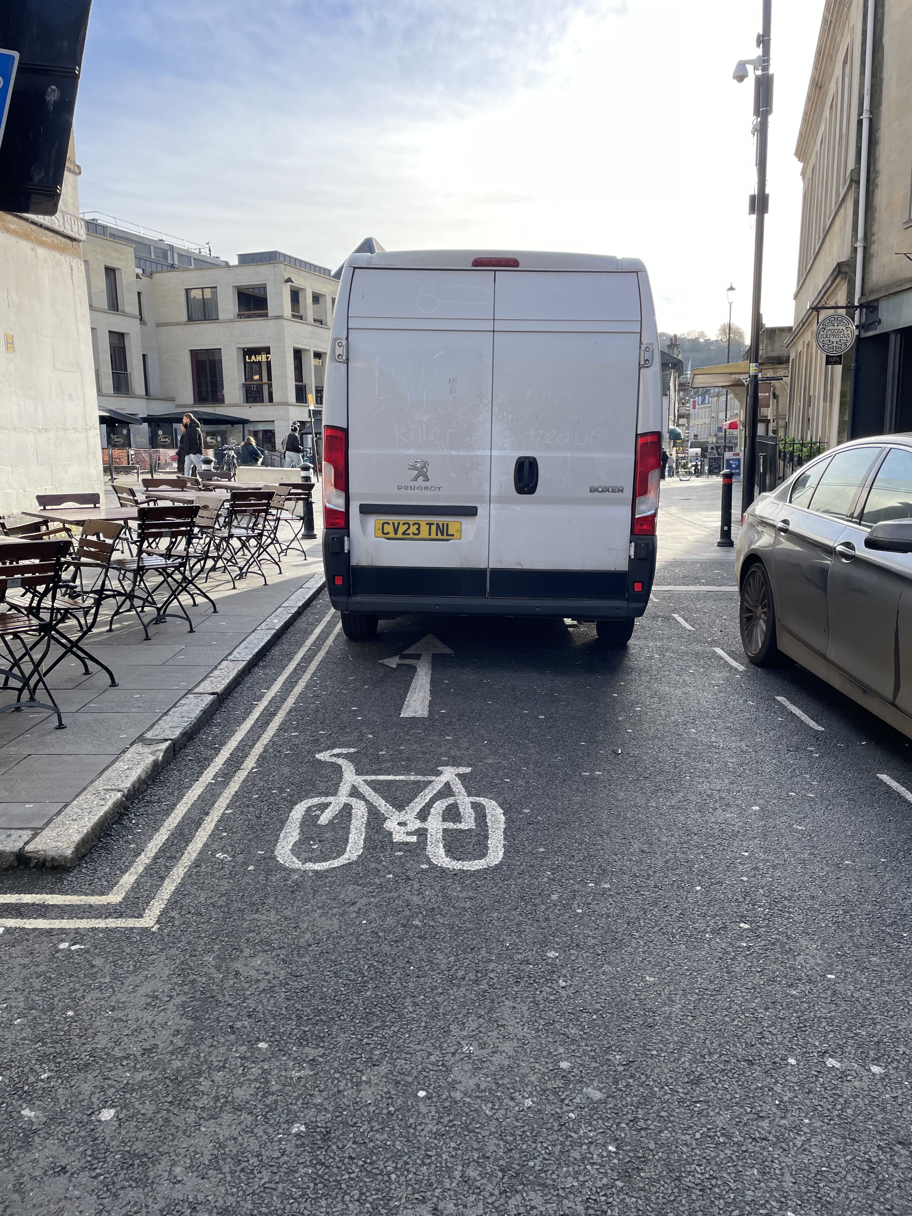 And this is all assuming the cycle gutter is actually clear of obstacles. People can’t even respect the mandatory cycle lanes on the Upper Bristol Road which have a solid white line and are clearly marked with wands, let alone a ‘suggested’ cycle lane. And that includes council drivers…