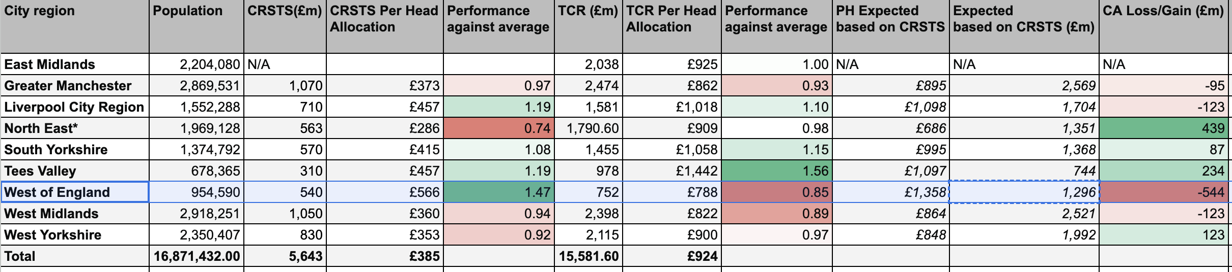 If WECA TCR performance had been as good as its CRSTS performance, it would have been allocated £1,296m. We missed out on £544m.