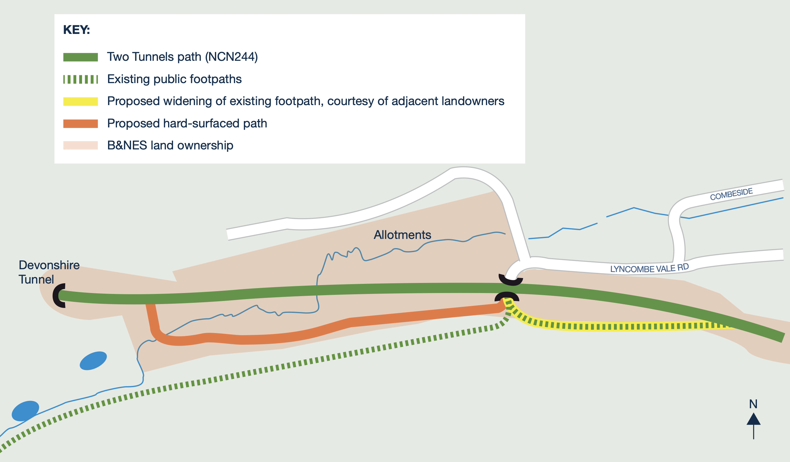 Lyncombe Vale – 2 Tunnels connection for all… outline plans have been drawn up identifying routes and a consultation has come and gone… but no funding as yet.