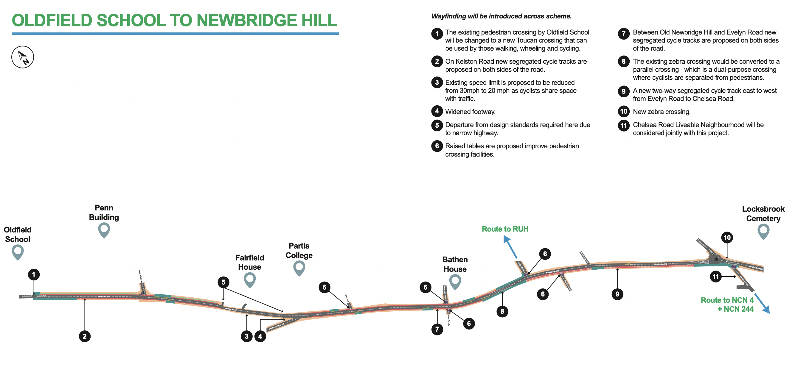 All gone a bit quiet on this one. The most exciting element of the project was the proposed Kelston Road cycle lane, giving a safe route to school for pupils at Newbridge Primary and Oldfield School.