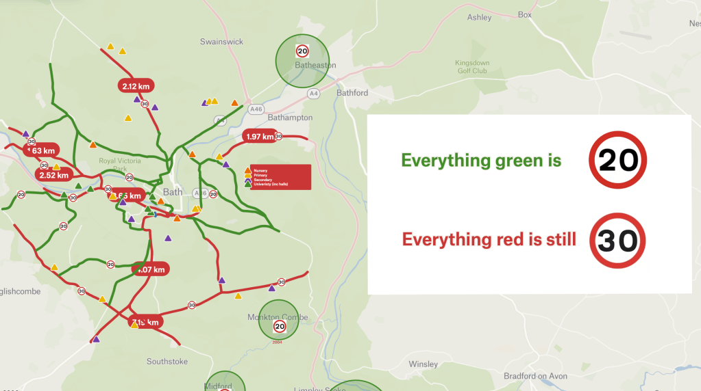 *where they made it to implementation. - MR TOAD’S OPINIONS SQUASHED- 20mph is now clearly established as the norm for all urban roads in BANES. Lives saved, injuries avoided, neighbourhoods enhanced. We still need to finish the job in Bath and create England’s first 20mph City- join hundreds of other citizens and sign the petition here to do the final 15 miles!