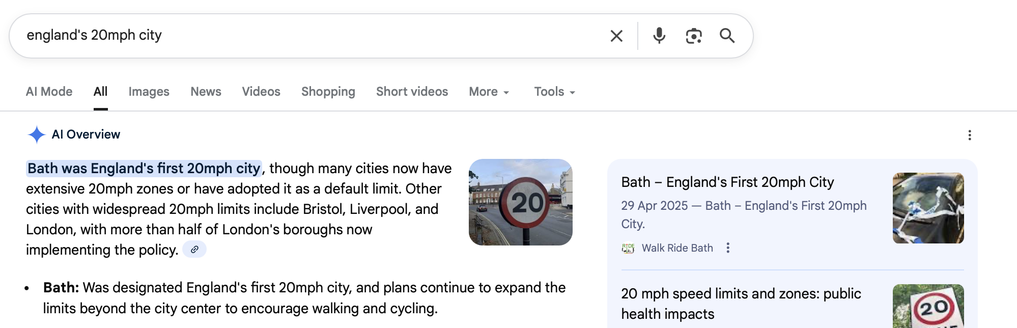 - ENGLANDS FIRST 20MPH CITY! Come on Bath- it is within touching distance! 15 miles to go. A city that shouts out that safety comes before driver speed- something to be really proud of! Please join hundred of others and sign the petition here.